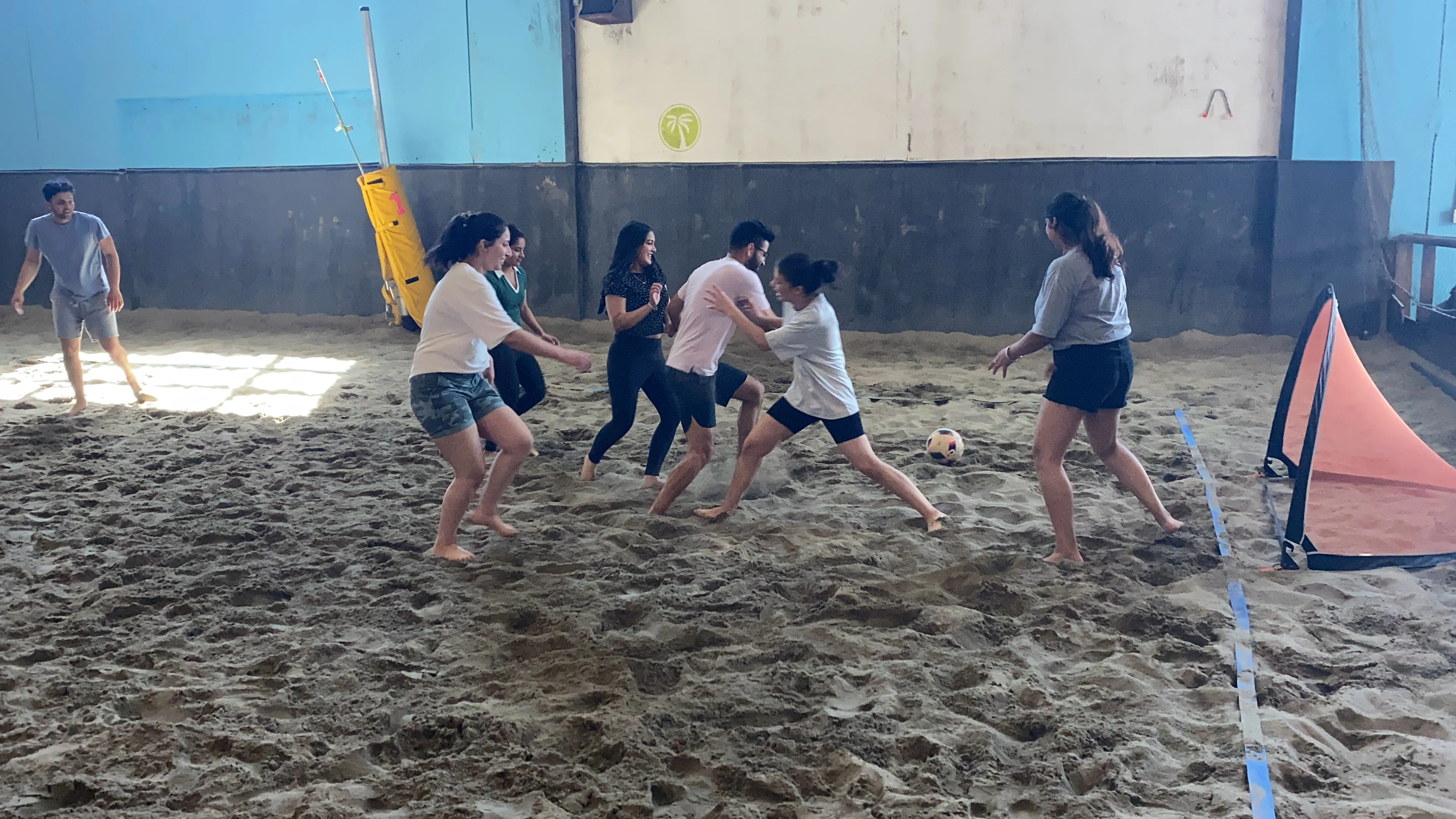 “Great spot to reserve a court with 12+ friends and run some indoor beach volleyball and archery tag. Music is played over speakers, they serve food and drinks too! Just bring your sportswear, good vibes, and they'll take care of the rest”.