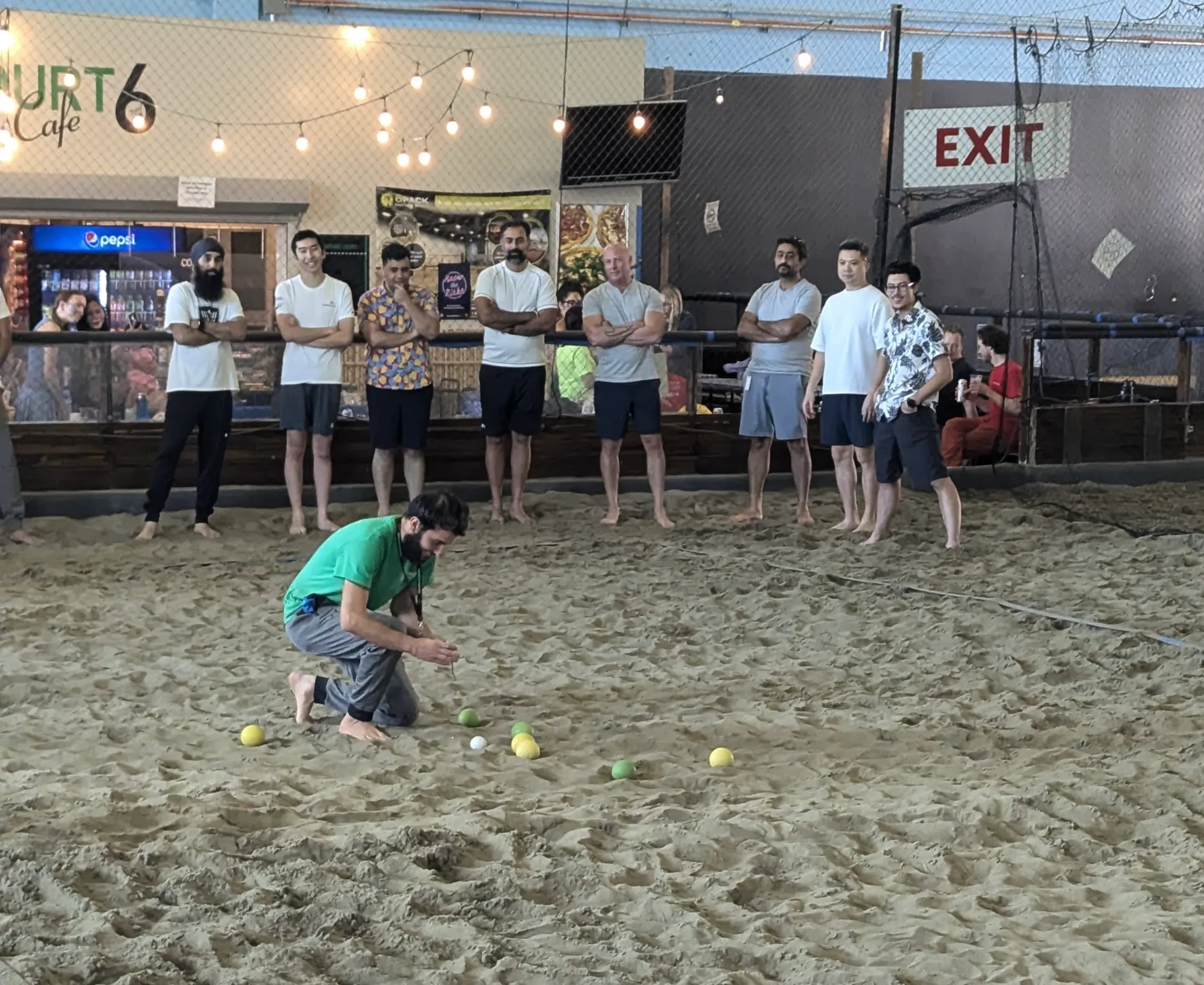 Choose from our scalable multisport event options — whether you’re organizing for a tight‐knit team of 20 or a large group of 100, our packages at 6Pack Indoor Beach support both. Located in Richmond and serving Vancouver and the surrounding region, our venue is the ideal indoor beach space for your next corporate event, team building activity or sports tournament experience. With activity add‑ons like Spike ball, Bocce, Beach Tennis and Giant Jenga, your event is not just another meeting—it’s a memorable, energizing outing that will leave your team motivated and connected. At our indoor beach venue in Richmond, BC, the traditional board‑room setting is replaced with soft sand, friendly competition and memorable team‑building activities. With our corporate multisport packages, your group will enjoy custom challenges tailored to your goals, whether you’re looking for high‑energy sports tournaments or more laid‑back team bonding sessions. From choosing 3‑5 different activities to coordinating game facilitators, our team ensures your event is seamless and engaging—perfect for corporate rentals Vancouver, event packages, and team building activities Vancouver.